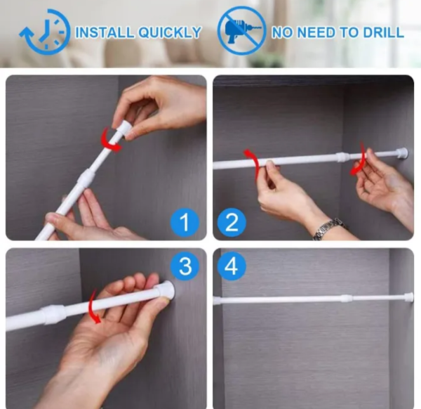 Esta barra de cortina se puede utilizar en el baño, barra colgante en un armario o en la cocina.