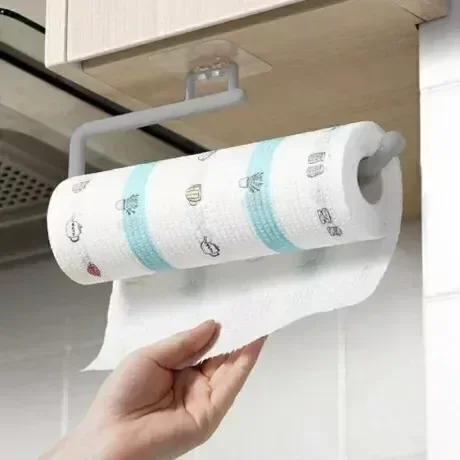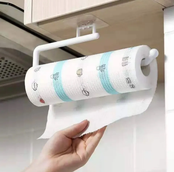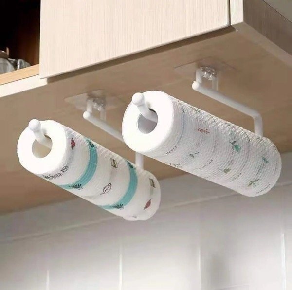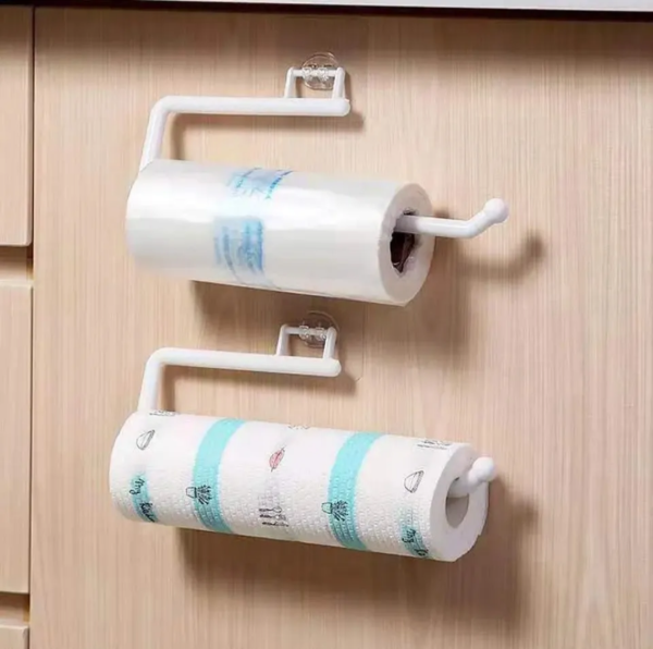 Para colgar el rollo de cocina, rollo de bolsas o repasador.