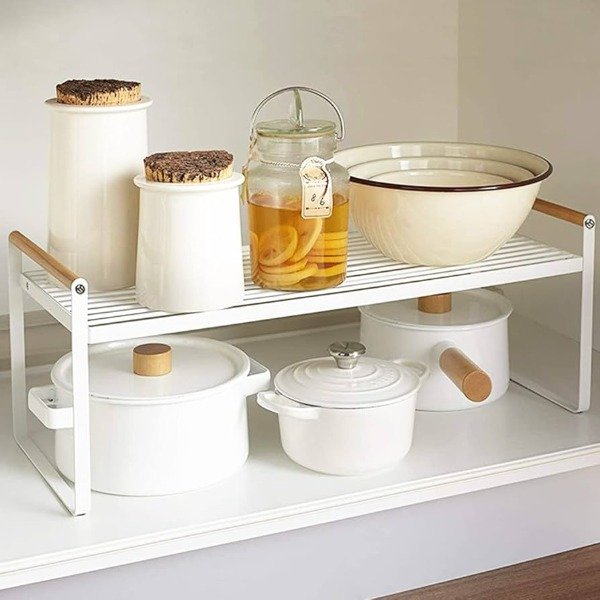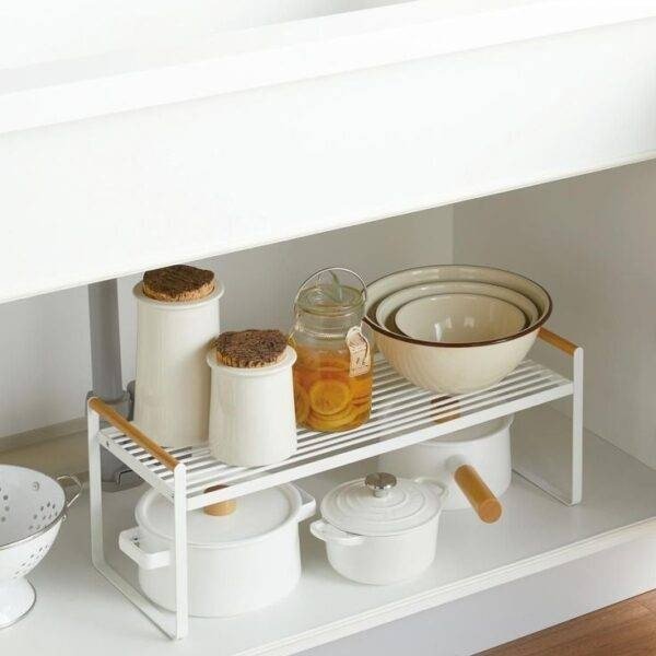 Agrega espacio extra a la mesada o la alacena von que este estante metálico. Calidad, estética y practicidad.