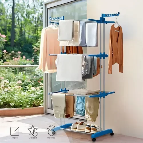 Este tender vertical te simplifica el tener ropa colgada adentro de casa. Optimiza el espacio hacia arriba.