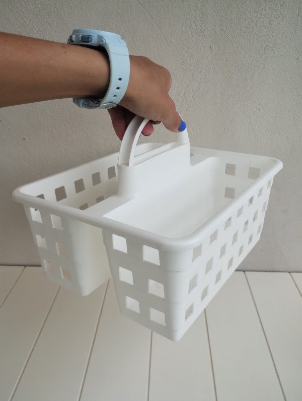 👌 Canasto organizador de limpieza con divisiones y manija para transportar fácilmente ✔ Para guardar los productos de limpieza pero también podes usarlo para guardar pequeños artículos de ferretería u ordenar el baño