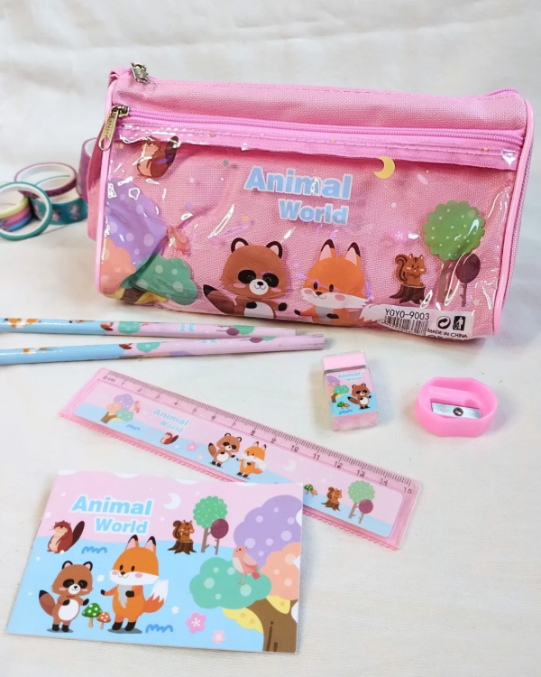 Cartuchera + útiles En el Bosque
