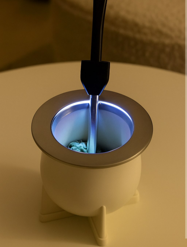 Una lucecita que se engancha en la bombilla para cebar mates mientras viajas, en campings y en cualquier lugar con poca luz